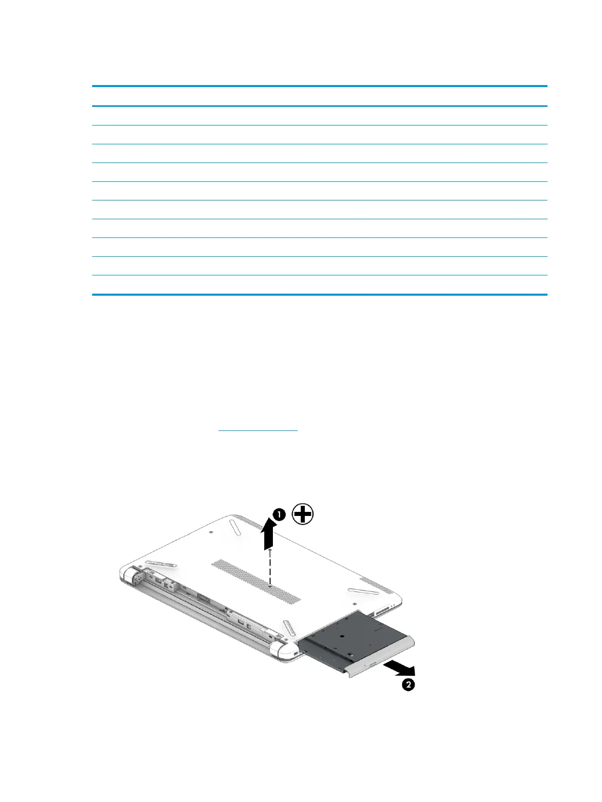2. Remove the optical drive (2) by sliding it out of the optical drive bay.