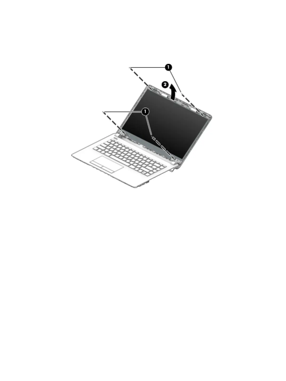 a. Remove the four Phillips PM2.0×3.0 screws (1) that secure the display panel to the top of the