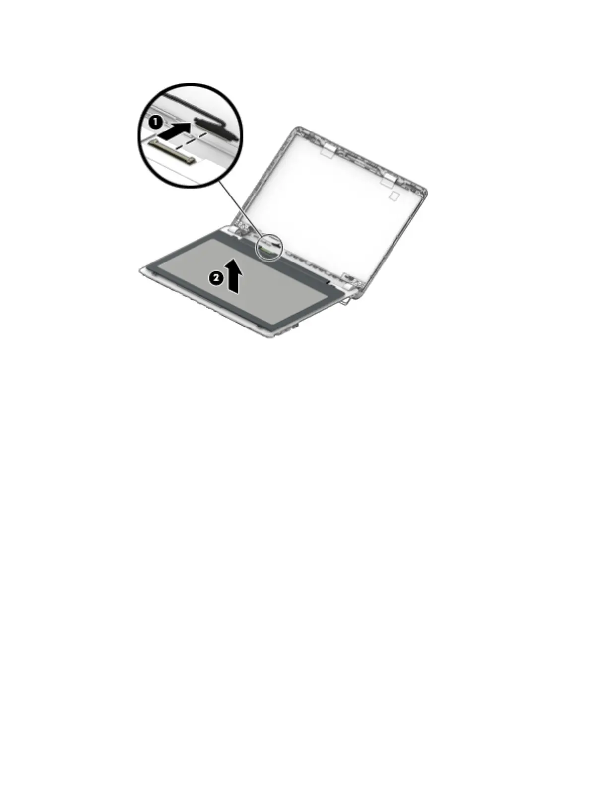 d. Remove the display panel from the computer (2).