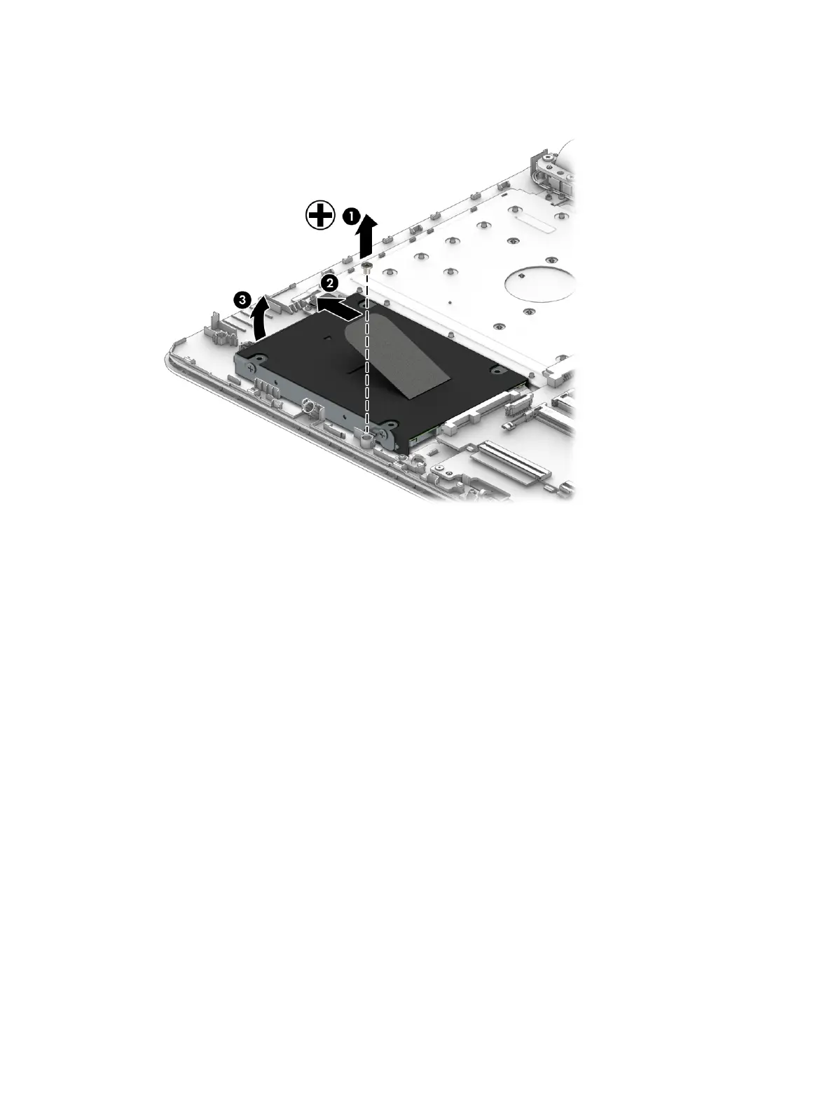 2. Pull the hard drive assembly away from connector (2), and the remove the hard drive assembly from the