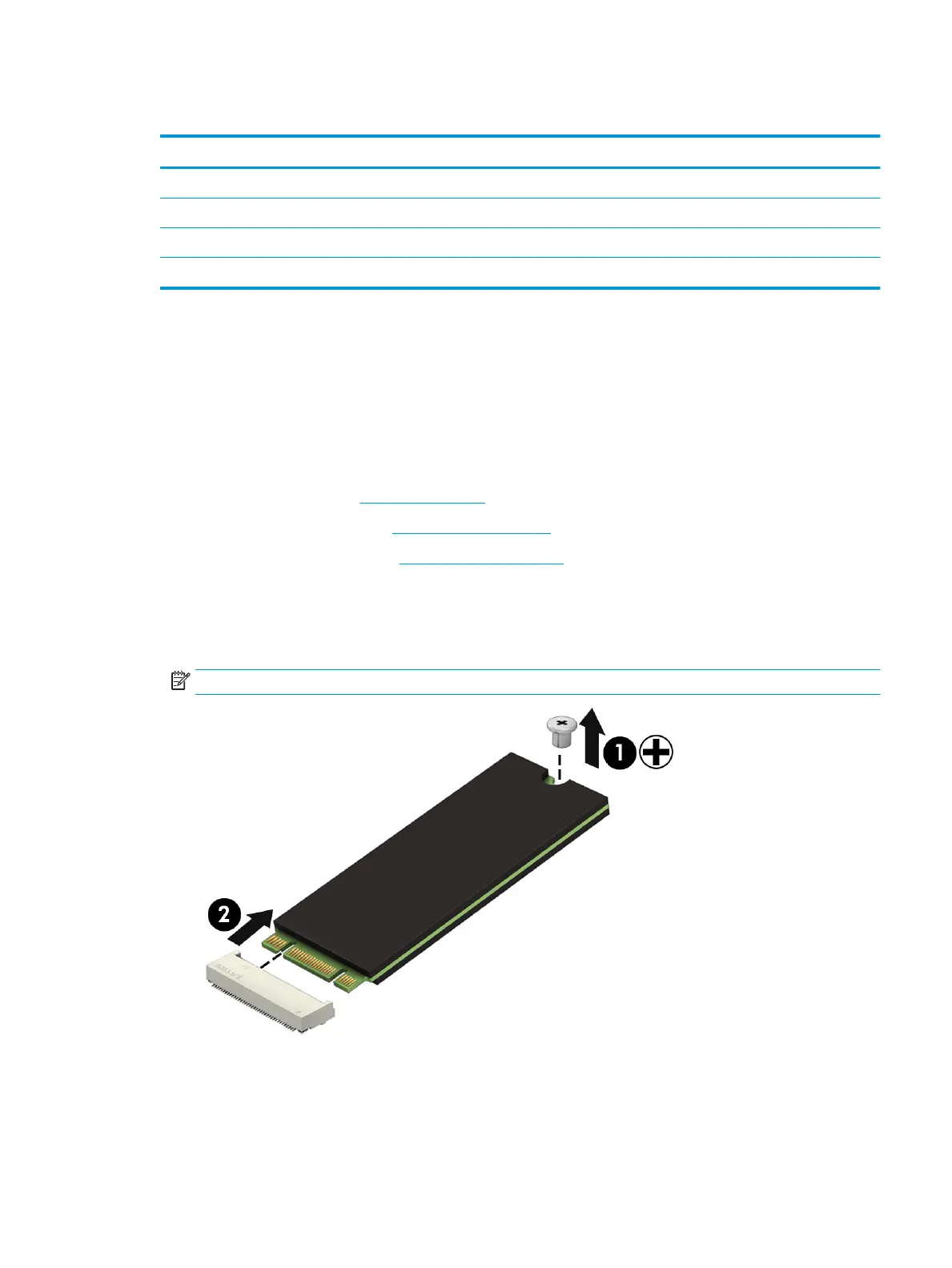 1. Remove the Phillips PM2.0×2.0 screw (1) that secures the drive to the system board.