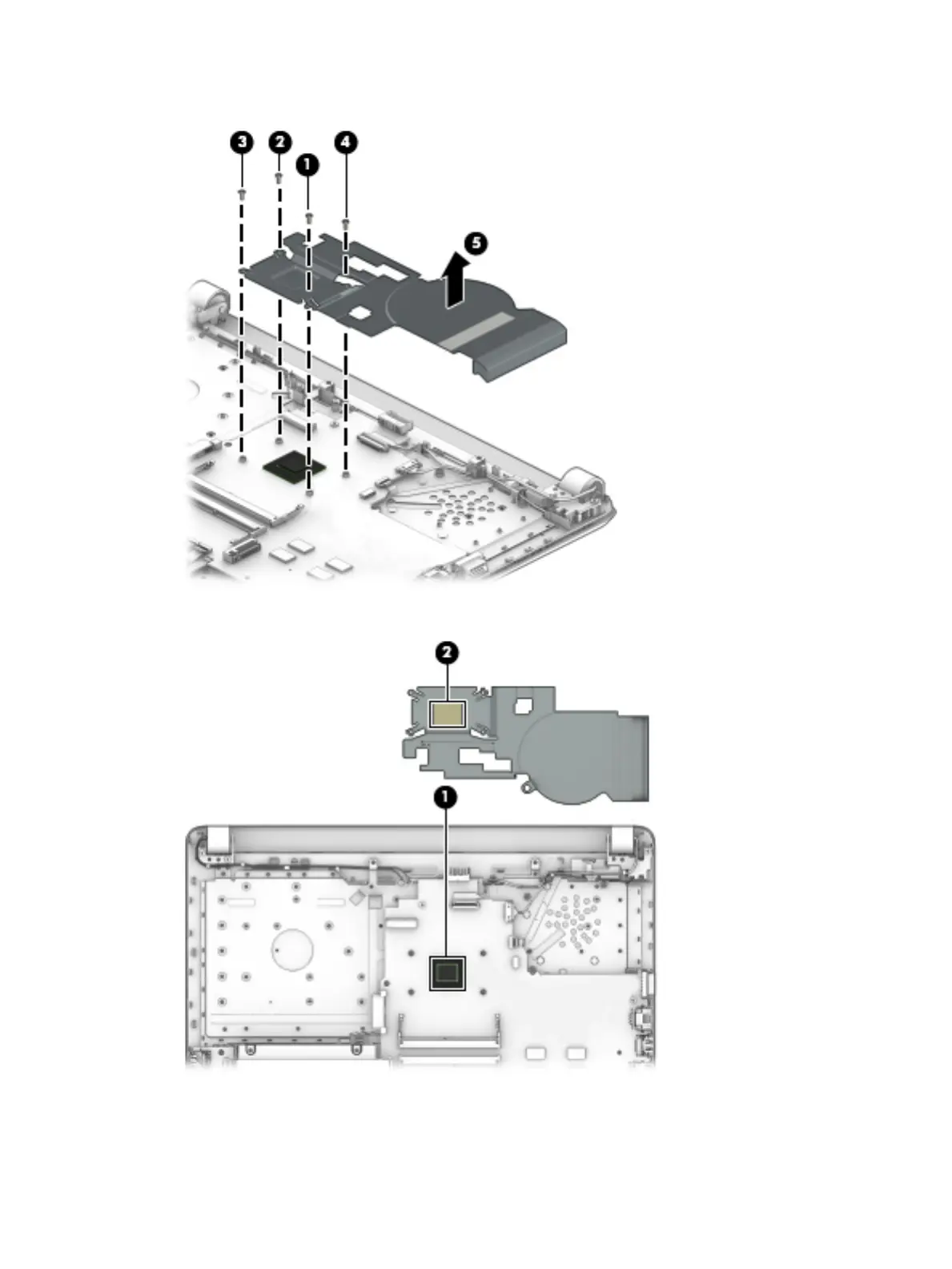 UMA graphics (fanless) Thermal paste is used on the heat sink (1) and the processor (2).