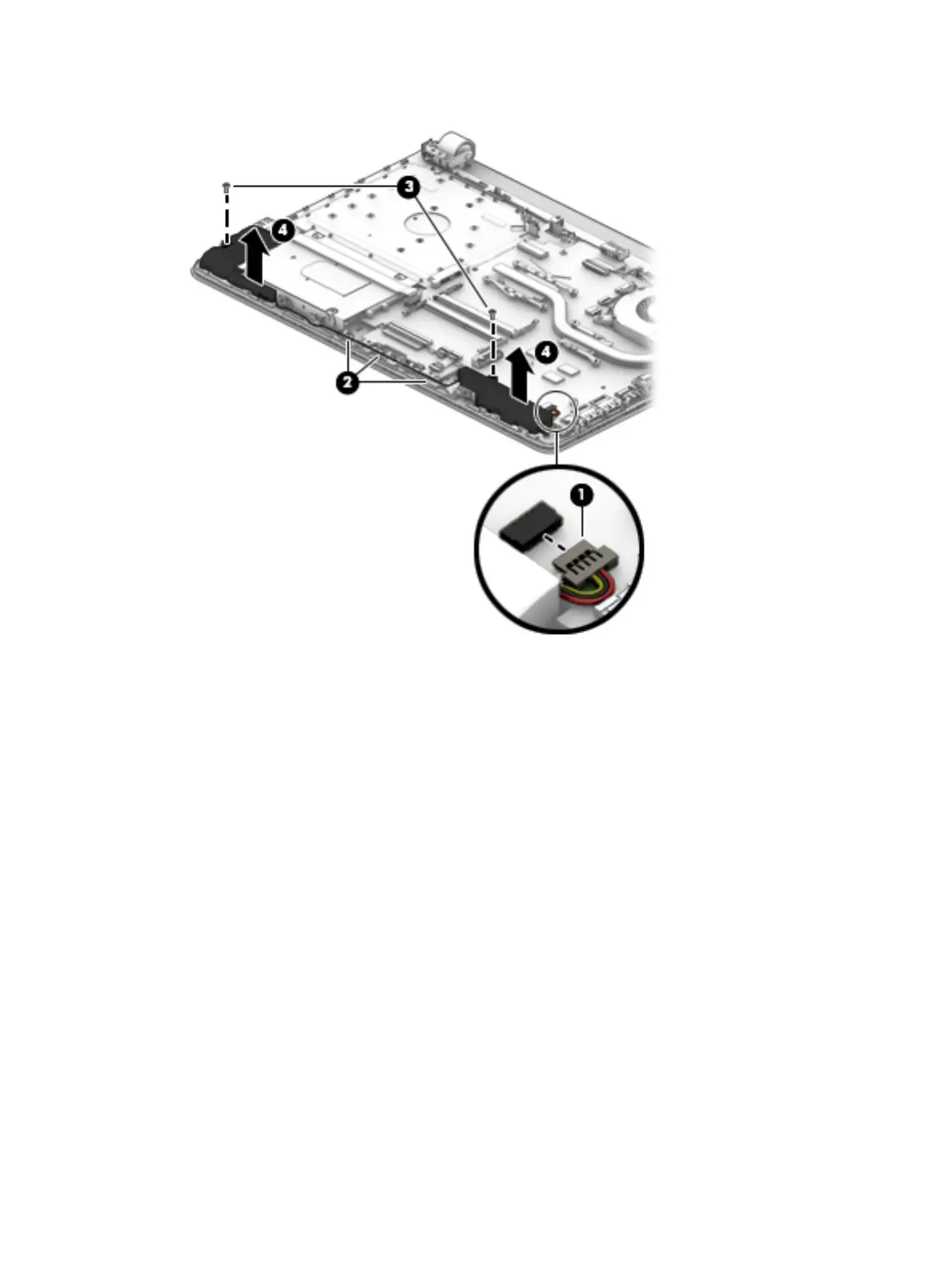 4. Lift up and remove the speakers from the computer (4).