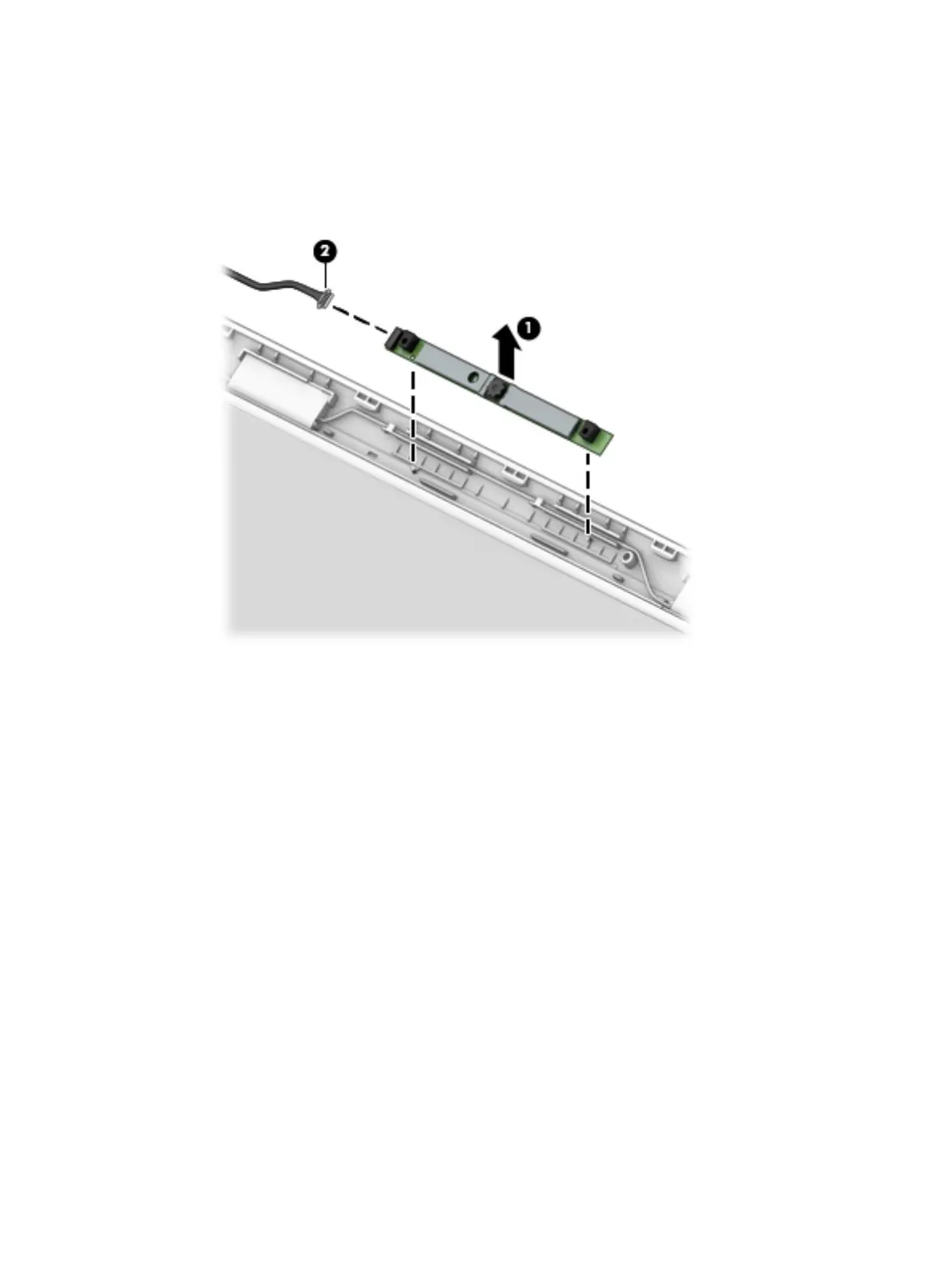 b. Pry up to disengage the camera/microphone module from the adhesive that secures it to the