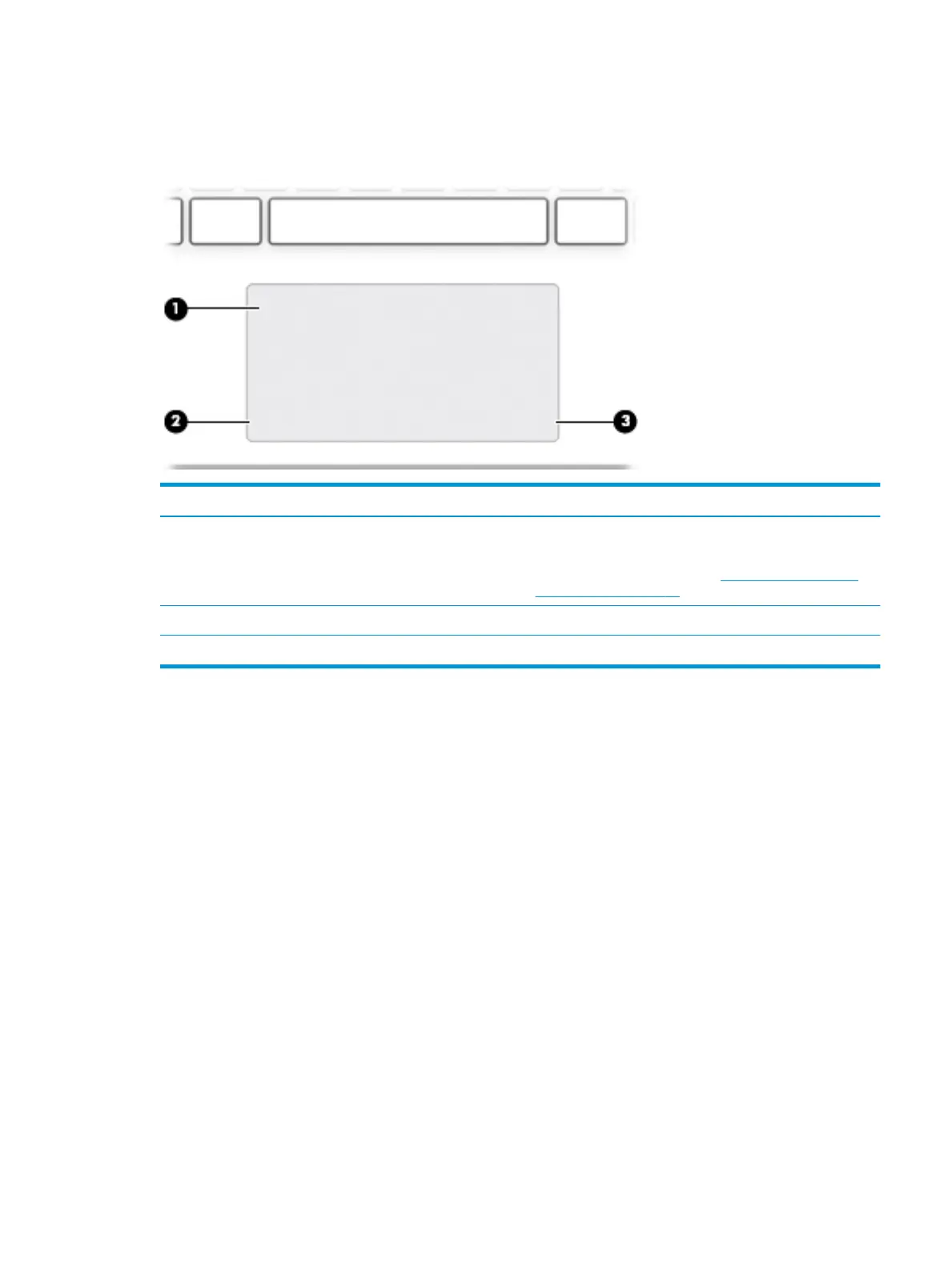 (1) TouchPad zone Reads your nger gestures to move the pointer or activate items