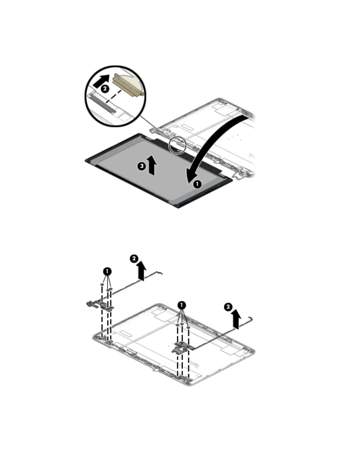 a. Remove the three Phillips M2.5 × 2.5 screw (1) from the bottom of each hinge.