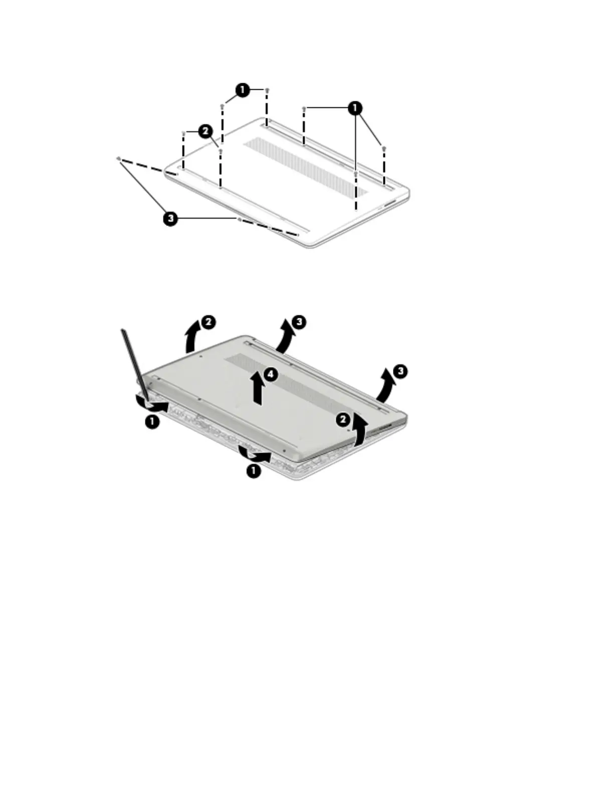 sides (2) and the top edge (3) of the bottom cover enough to separate it from the computer.