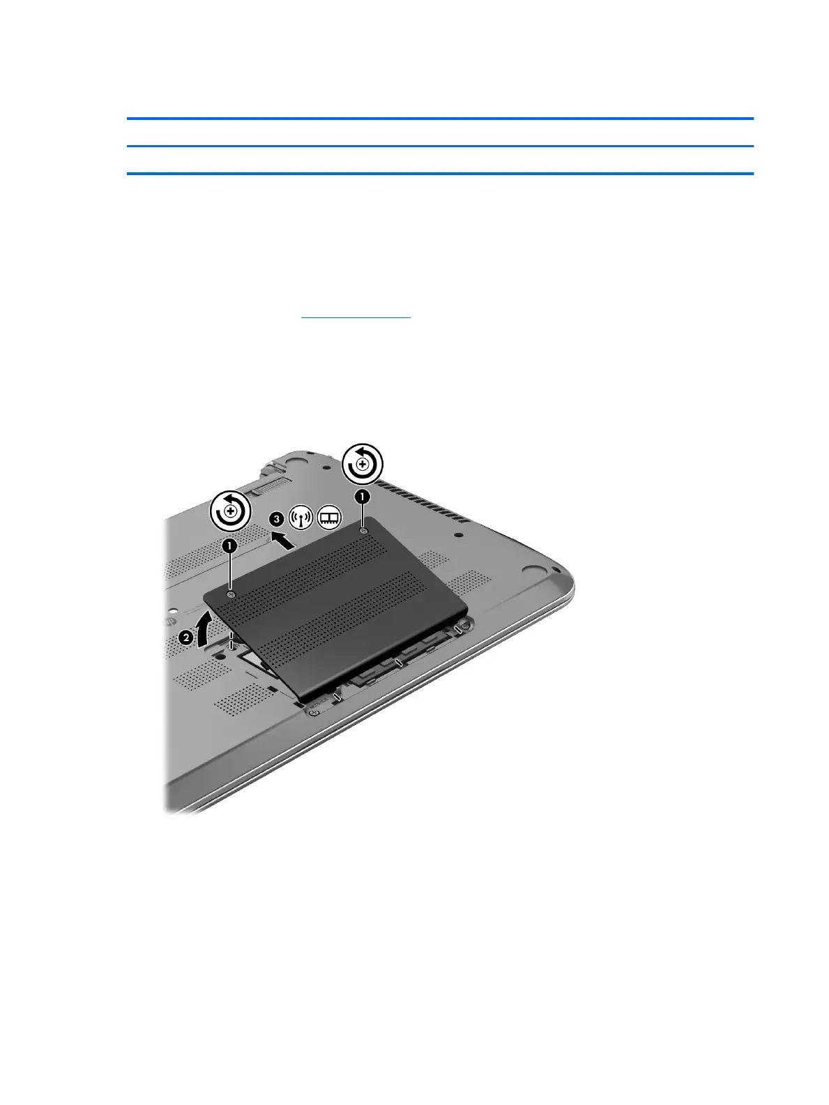 1. Loosen the two captive Phillips screws (1) that secure the service cover to the computer.