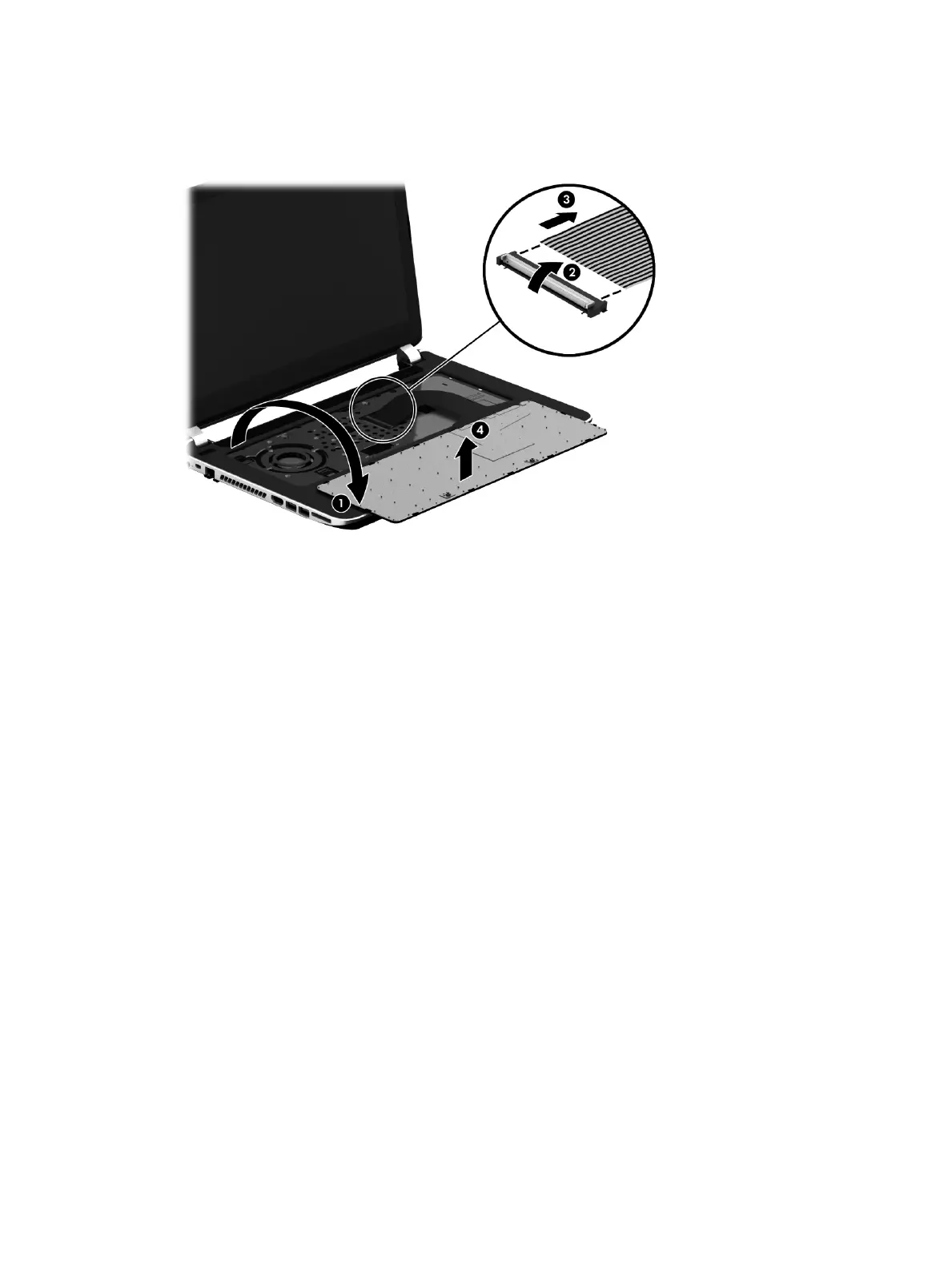10. Release the zero insertion force (ZIF) connector (2) to which the keyboard cable is connecected,