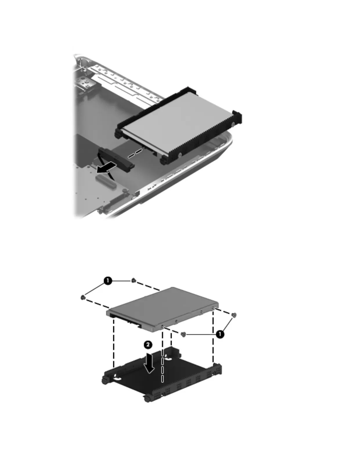 1. Remove the four Phillips M3.0×3.5 screws (1) that secure the hard drive bracket to the hard drive.