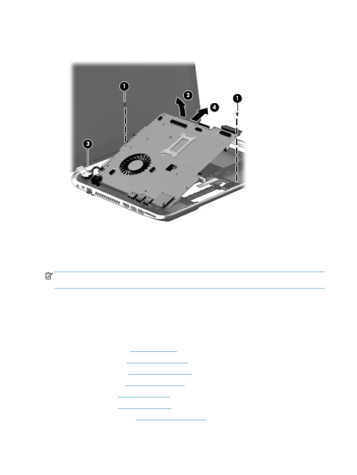 4. Remove the battery (see Battery on page 25), and then remove the following components: