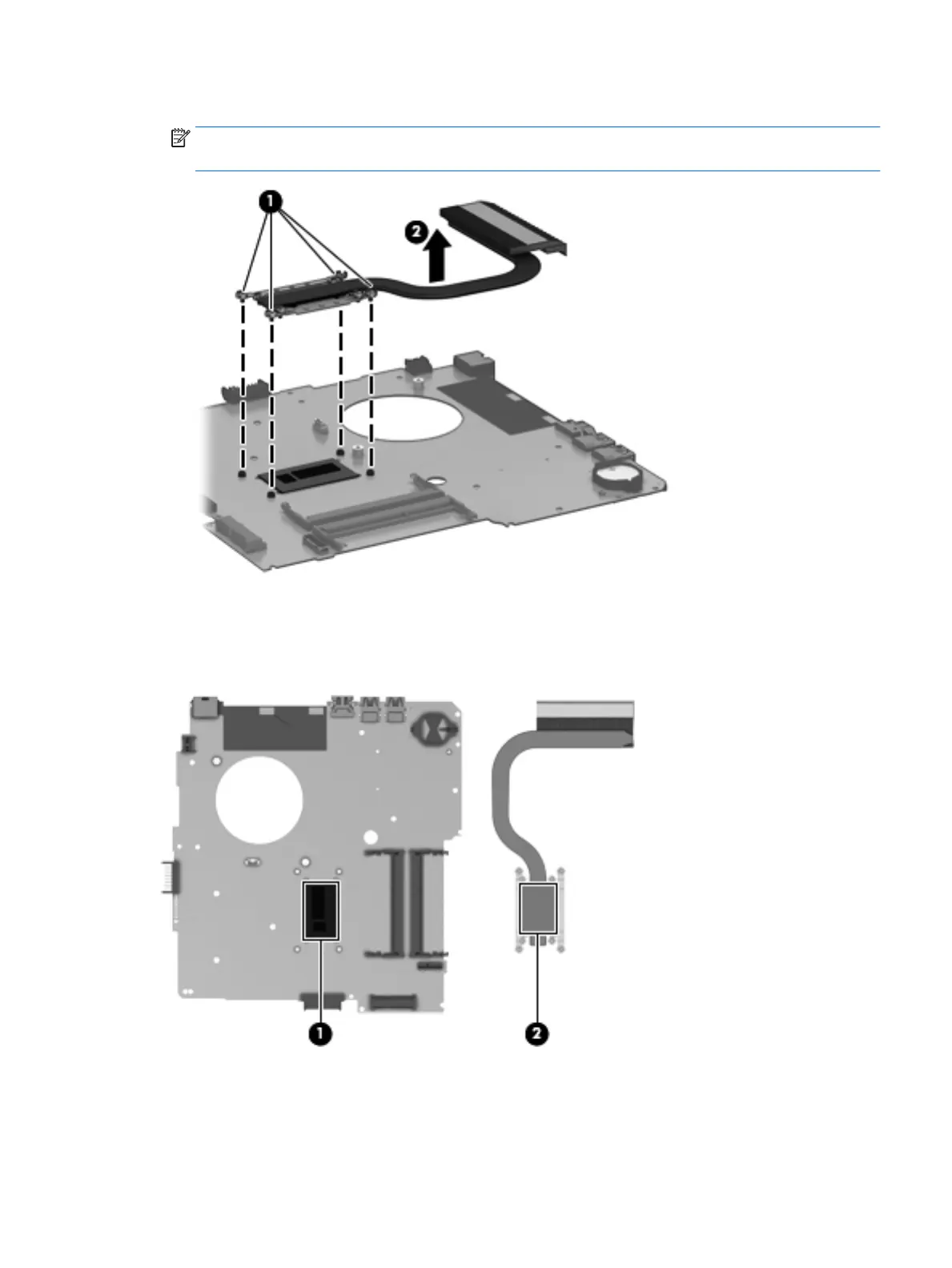 and the system board each time the heat sink is removed. Replacement thermal material is included