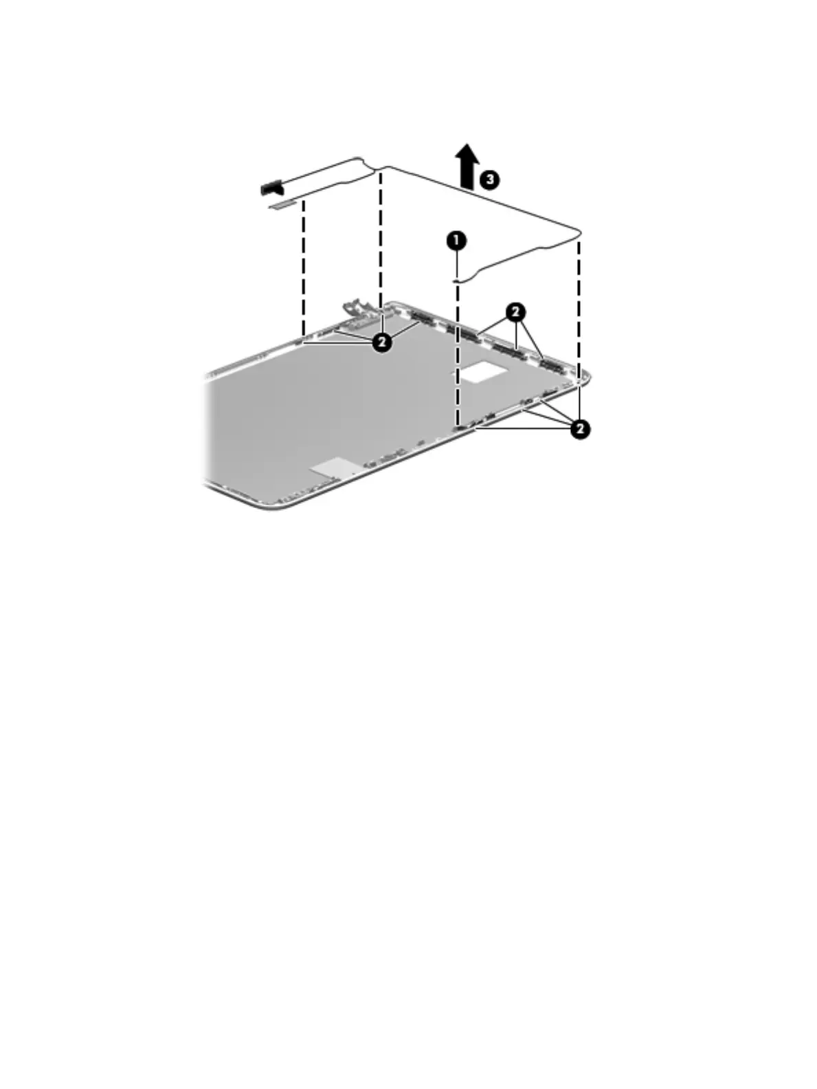 b. Release the wireless antenna cable from the clips (2) built into the display enclosure.