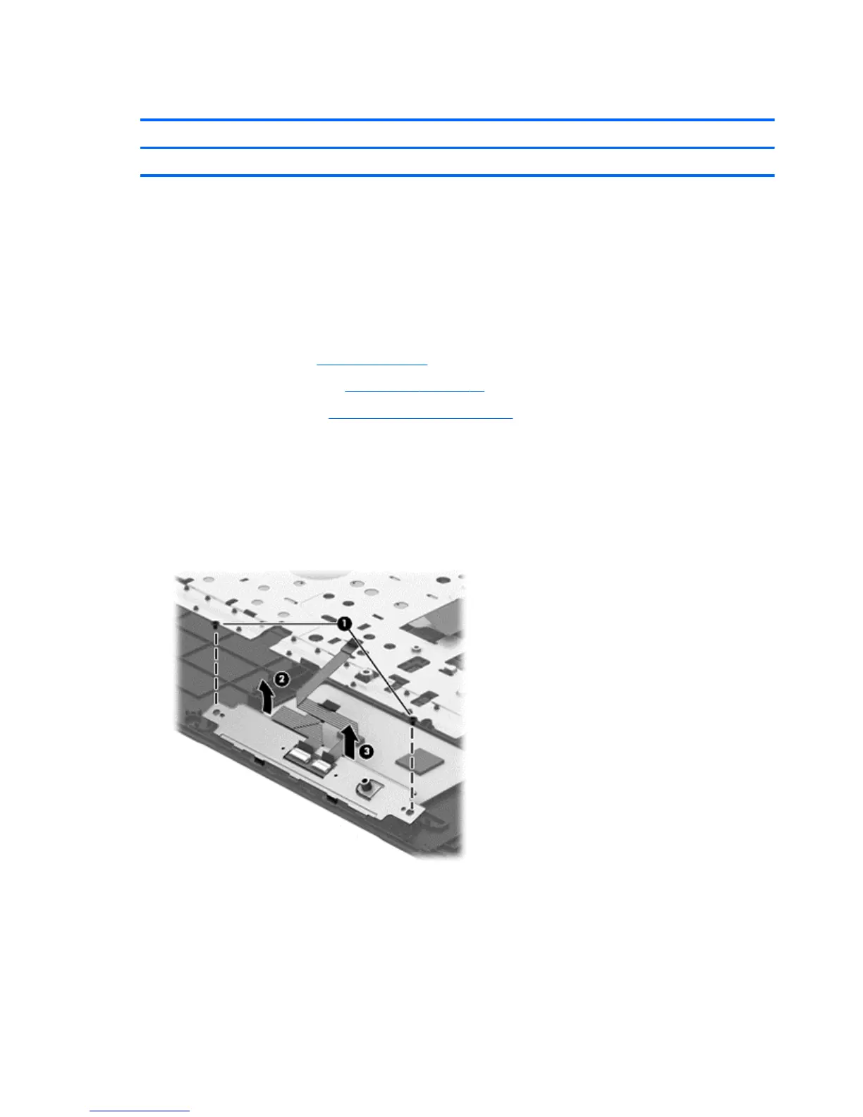 2. Remove the two Phillips PM2.0×3.0 screws (1) that secure the TouchPad button board to the top cover.