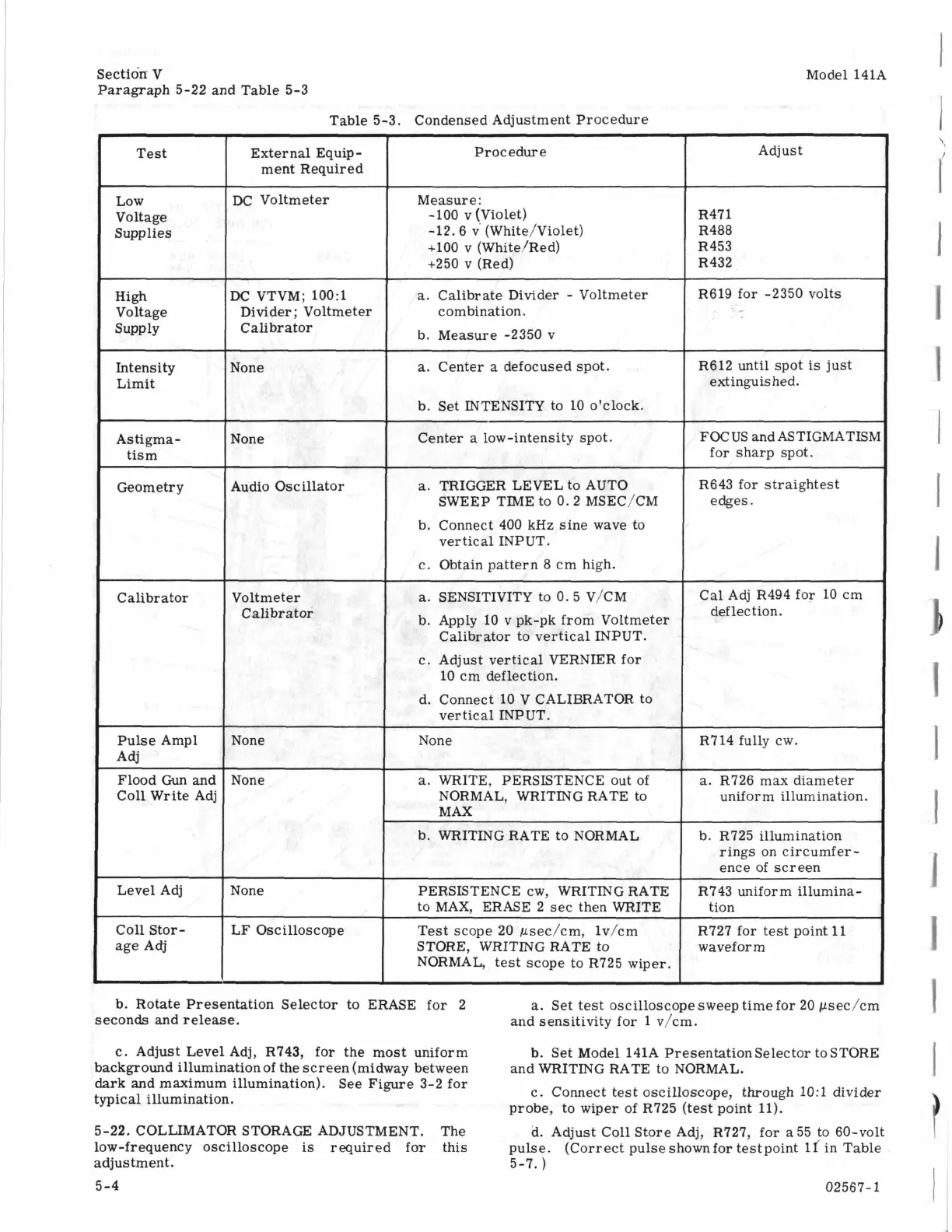 Table 5-3. Condensed Adjustment Procedure