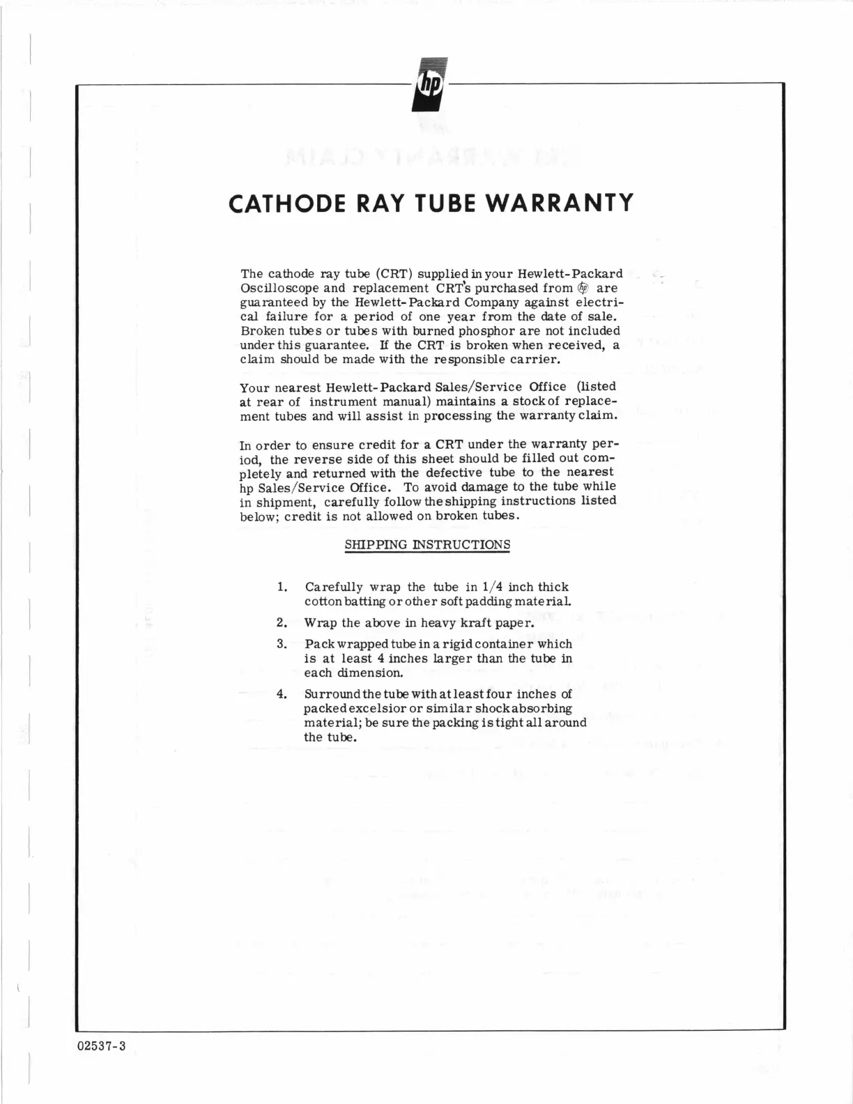 The cathode ray tube (CRT) supplied in your Hewlett-Packard