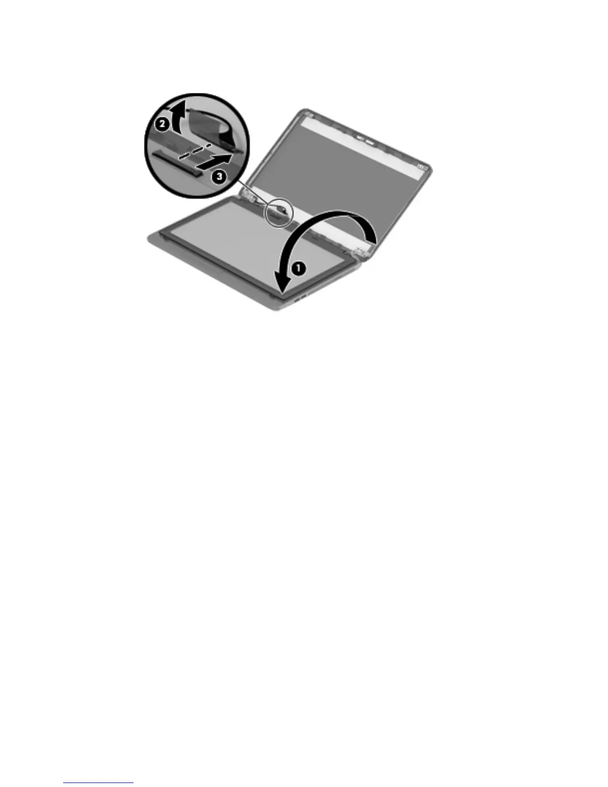 c. On the back of the display panel, release the adhesive strip (2) that secures the display panel cable