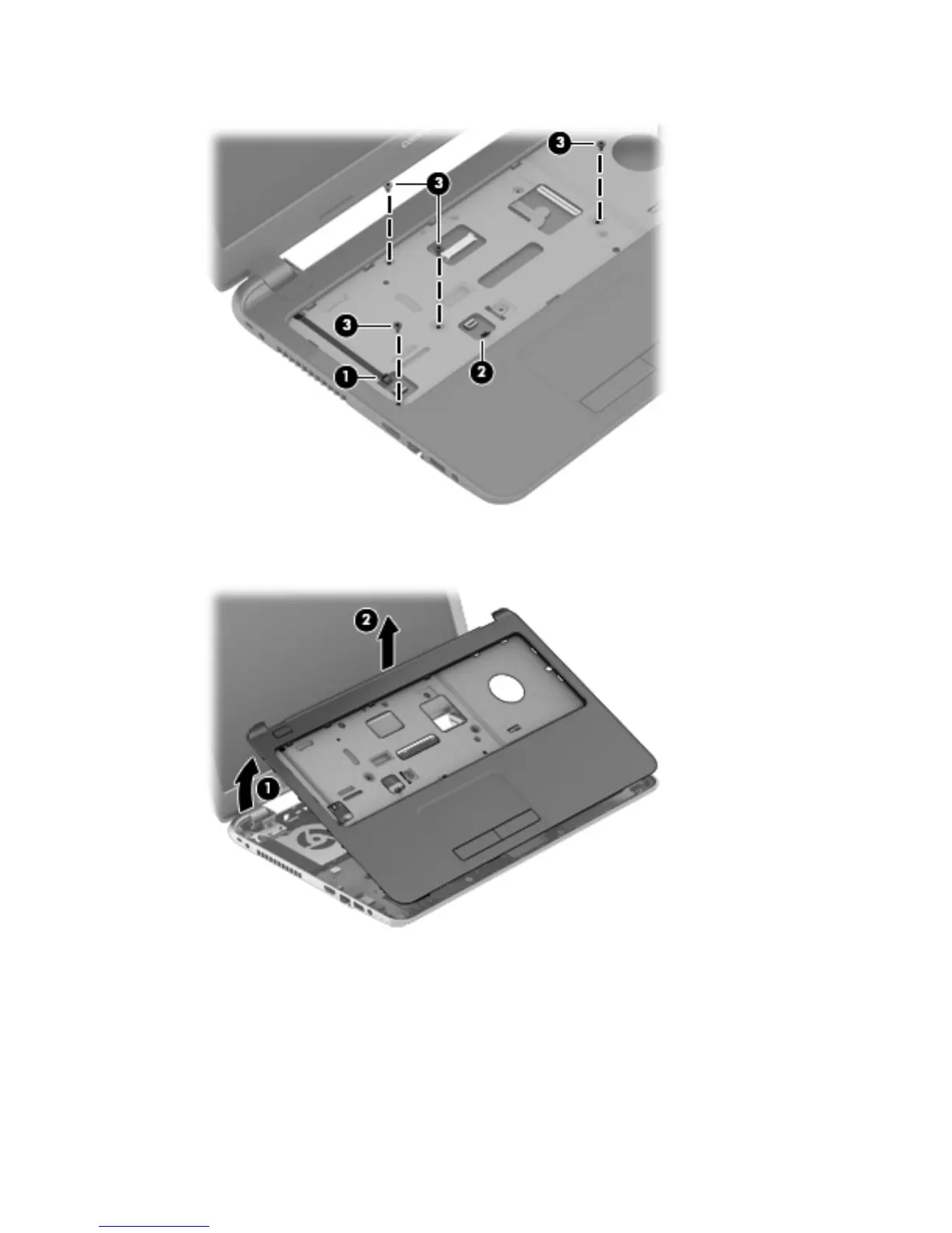 7. Remove the four Phillips PM2.5×5.0 screws (3) that secure the top cover to the computer.