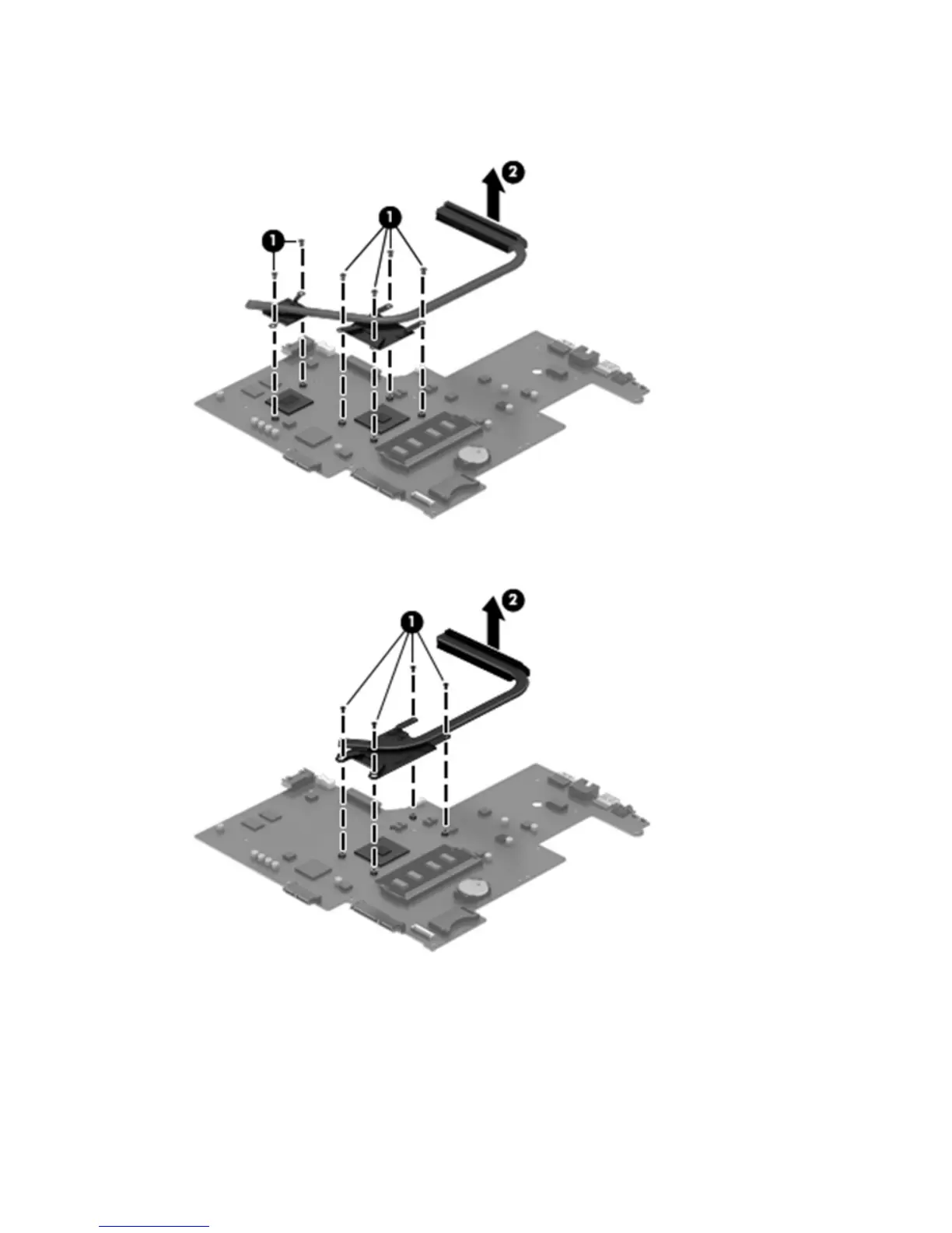 Discrete graphics: Thermal paste is used on the processor and associated heat sink area (1)(2), as well