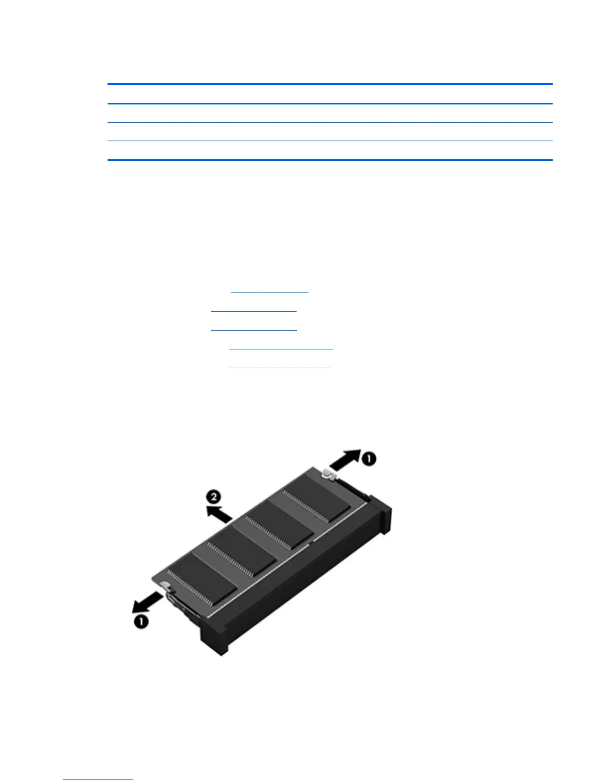 2. Remove the memory module (2) by pulling it away from the slot at an angle.