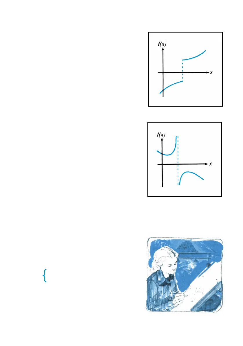 a discontinuity that crosses the x-axis,