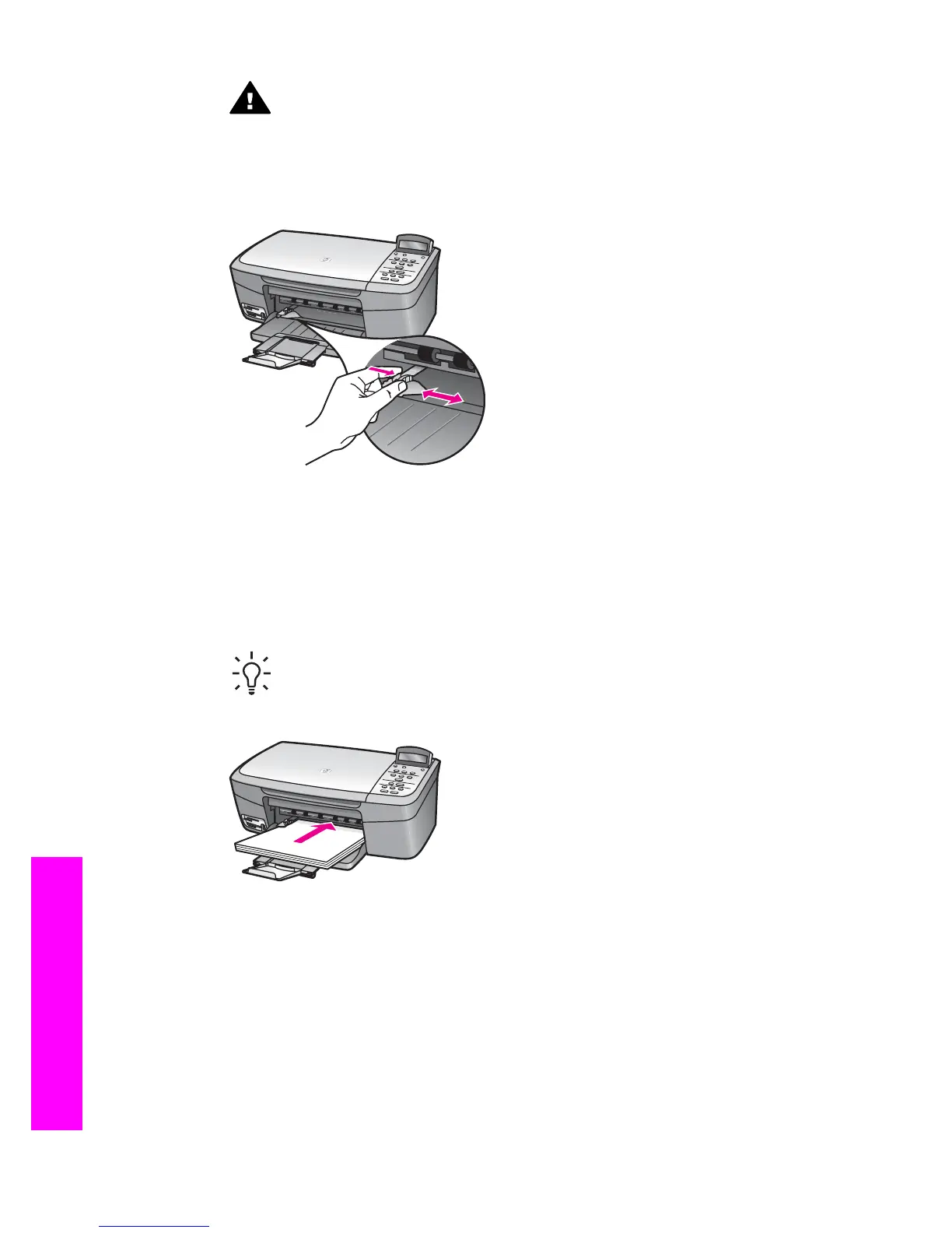 6. Squeeze and hold the tab on the top of the paper-width guide, then slide the