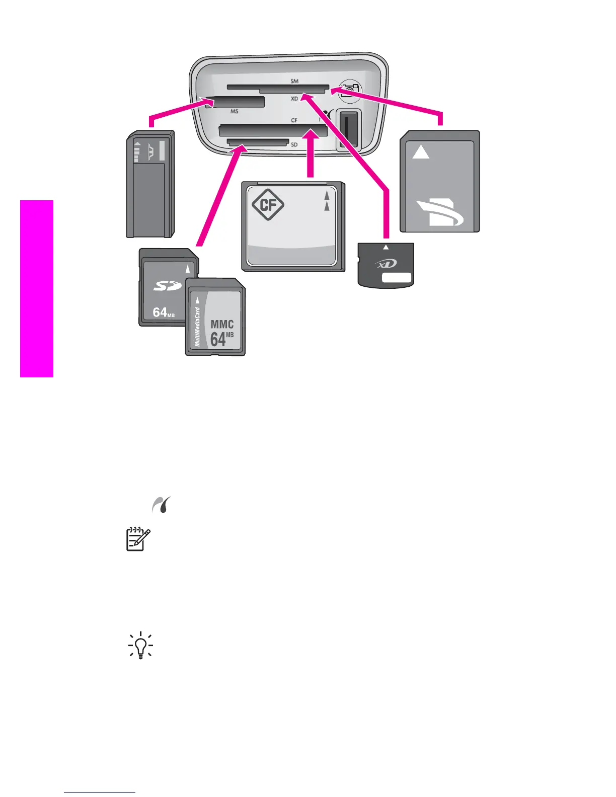 ● SmartMedia, xD-Picture Card (fits in bottom right of the slot)
