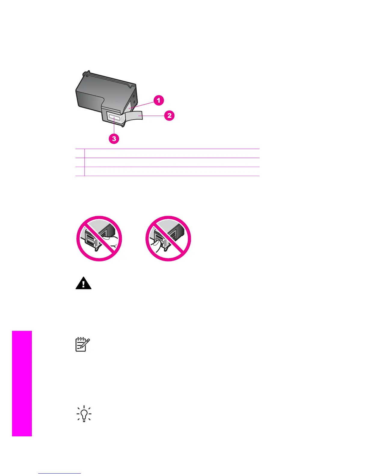 Hold the print cartridges by their black plastic sides, with the label on top. Do not