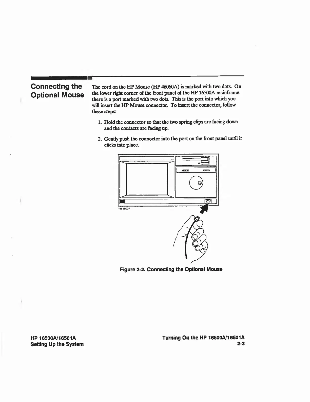 HP 16500A - Connecting the Optional Mouse.2-3