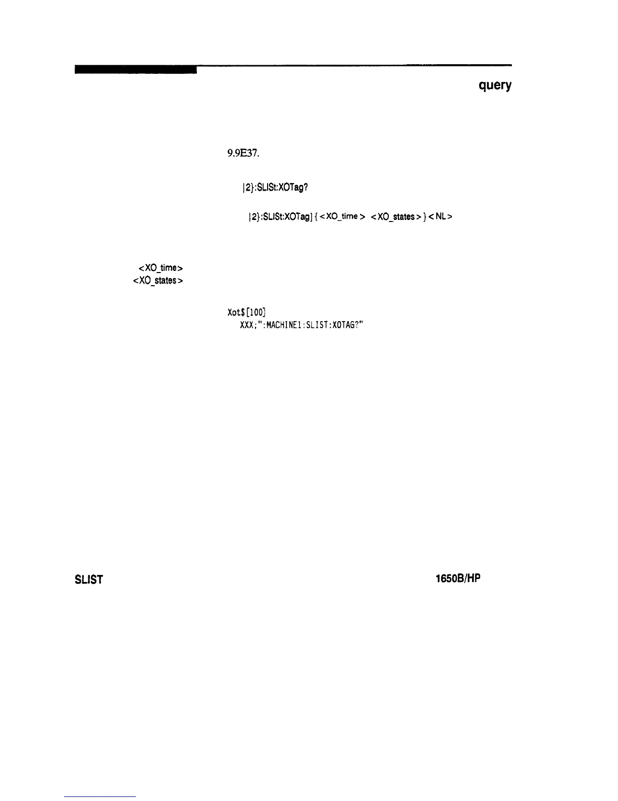 20 OUTPUT XXX;":MACHINEl:SLIST:XOTAG?"