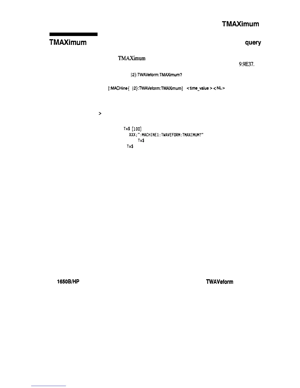 20 OUTPUT XXX;":MACHINEl:TWAVEFORM:TMAXIMUM?"