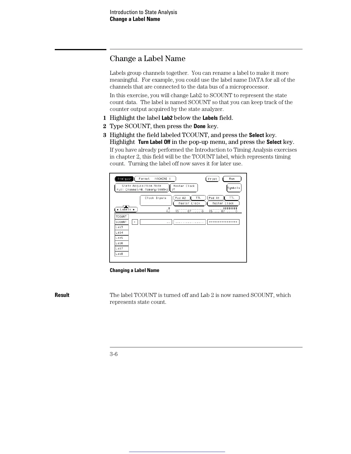 Result The label TCOUNT is turned off and Lab 2 is now named SCOUNT, which