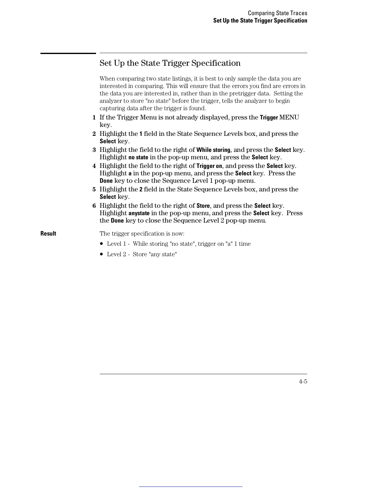 analyzer to store "no state" before the trigger, tells the analyzer to begin