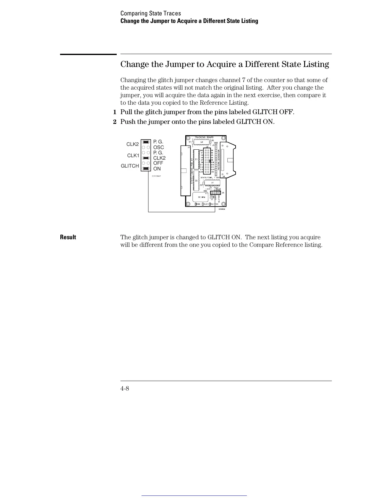 Result The glitch jumper is changed to GLITCH ON. The next listing you acquire