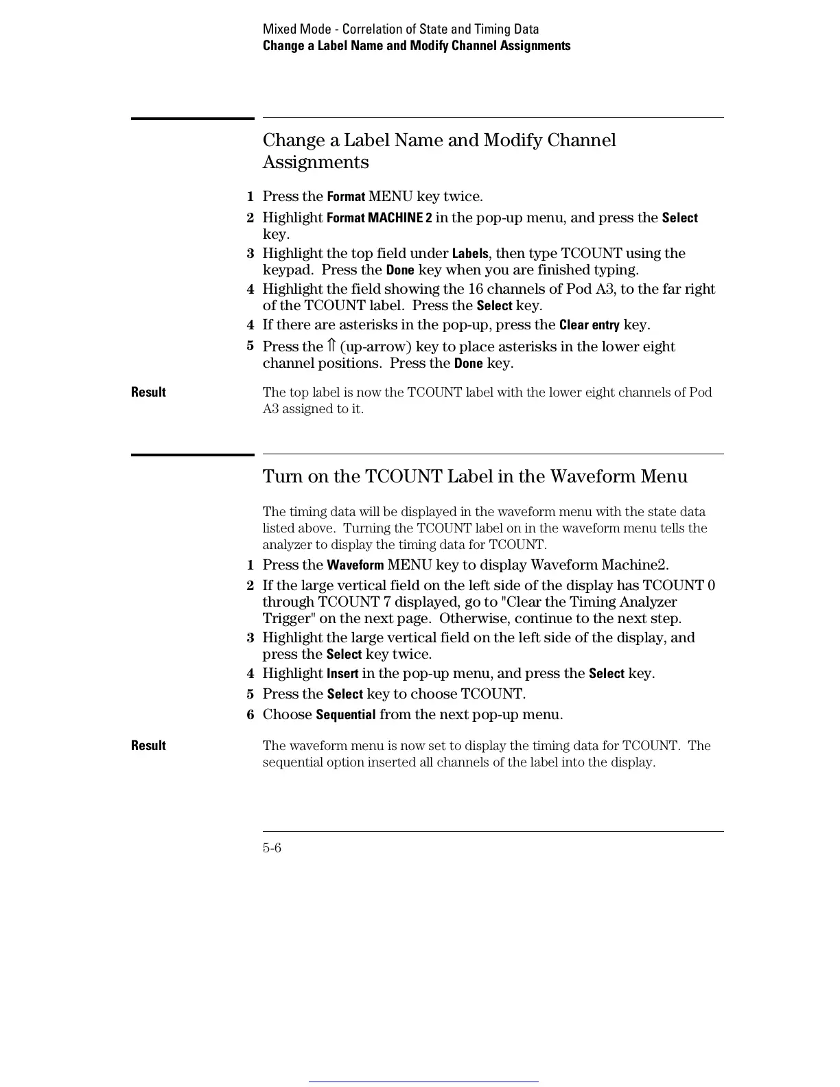 Result The waveform menu is now set to display the timing data for TCOUNT. The