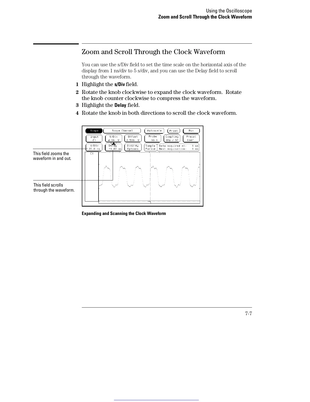 display from 1 ns/div to 5 s/div, and you can use the Delay field to scroll