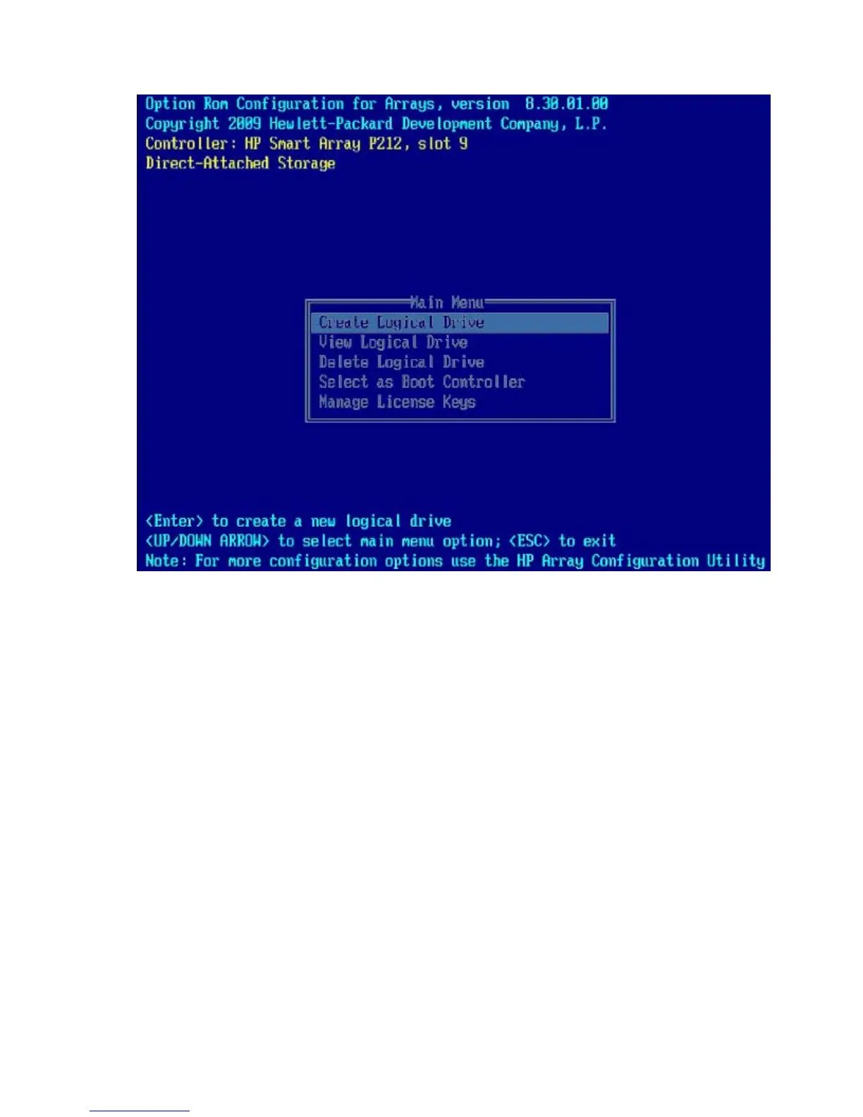 4. Press the arrow keys, spacebar, and Tab key to navigate the screen and set up the logical drive,