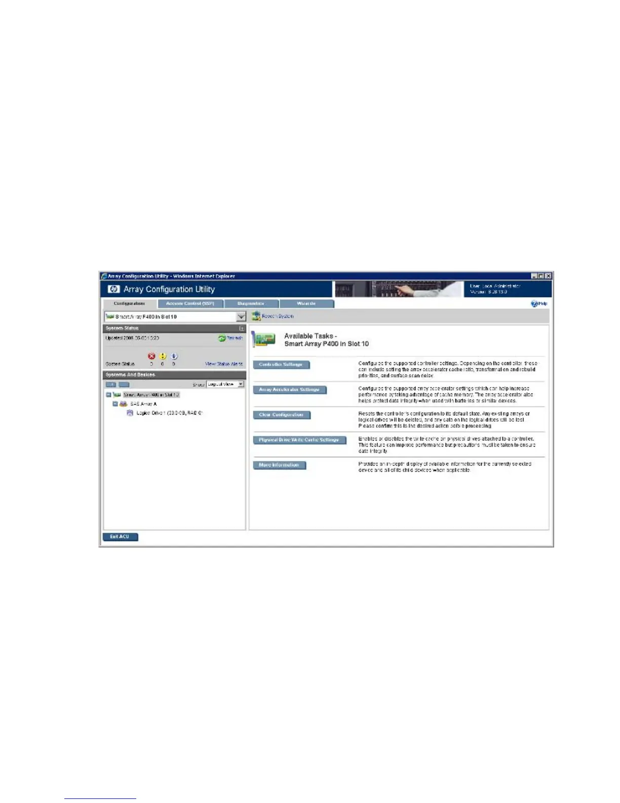 2. Click Start, and then select Programs>HP System Tools>HP Array Configuration Utility.