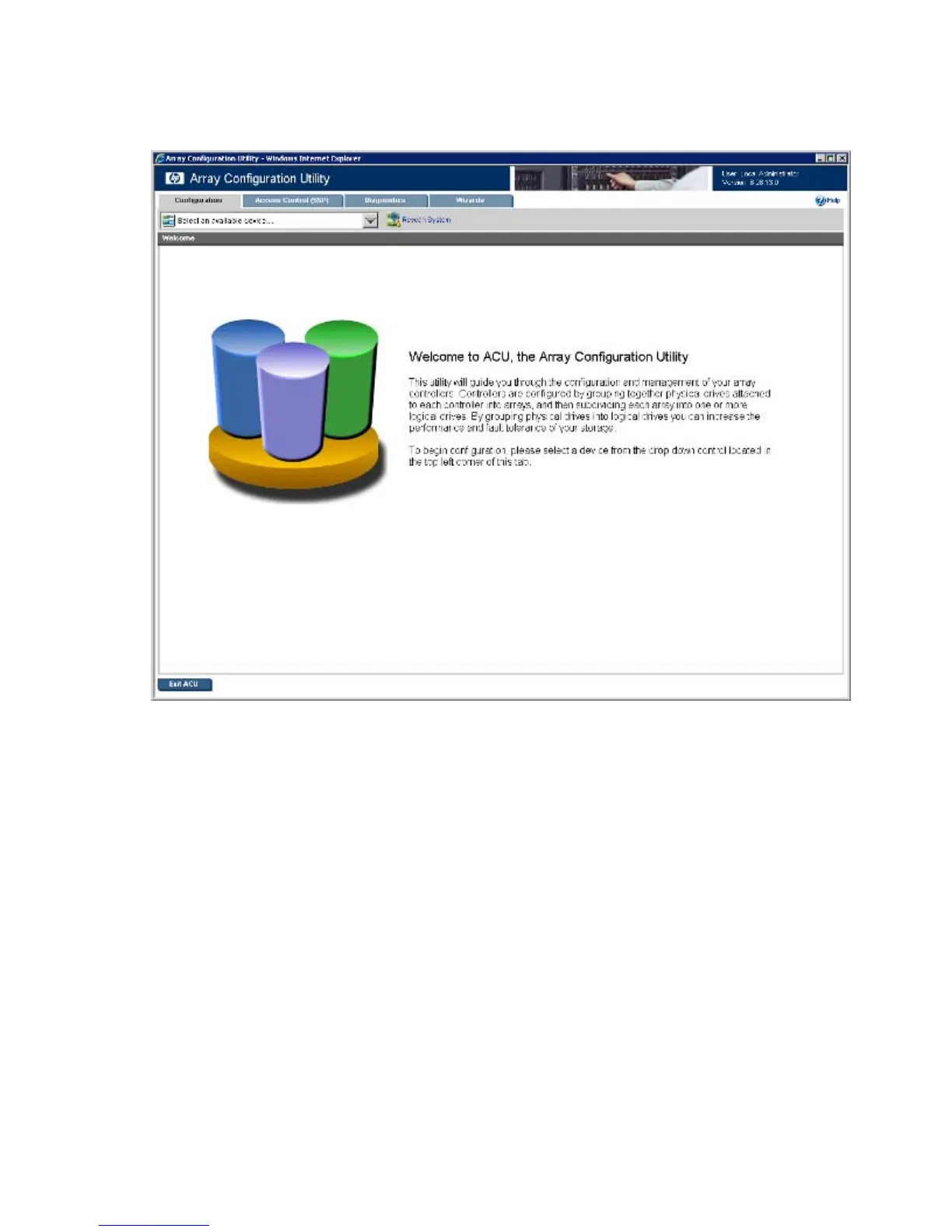 o Wizards—This screen displays available array and controller tasks that ACU can complete