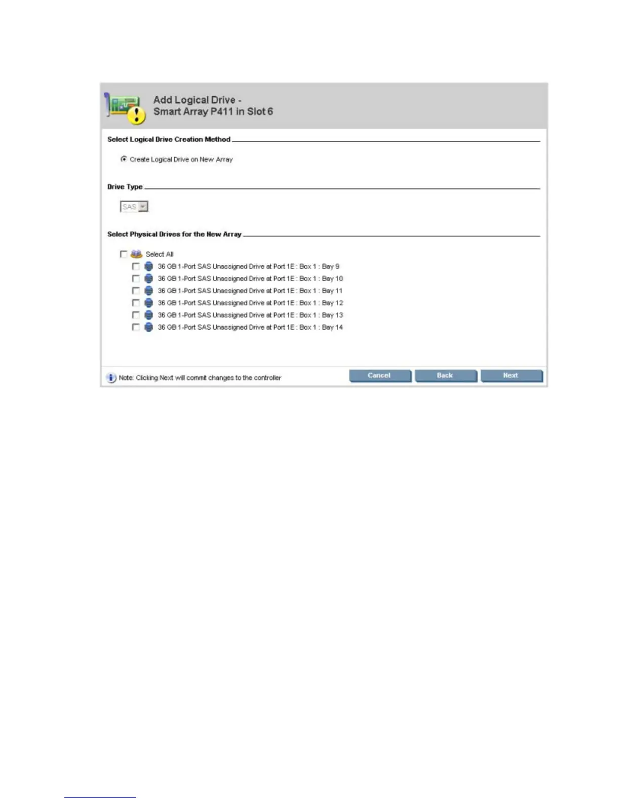 This wizard is available only under two conditions: when an array on the selected controller contains