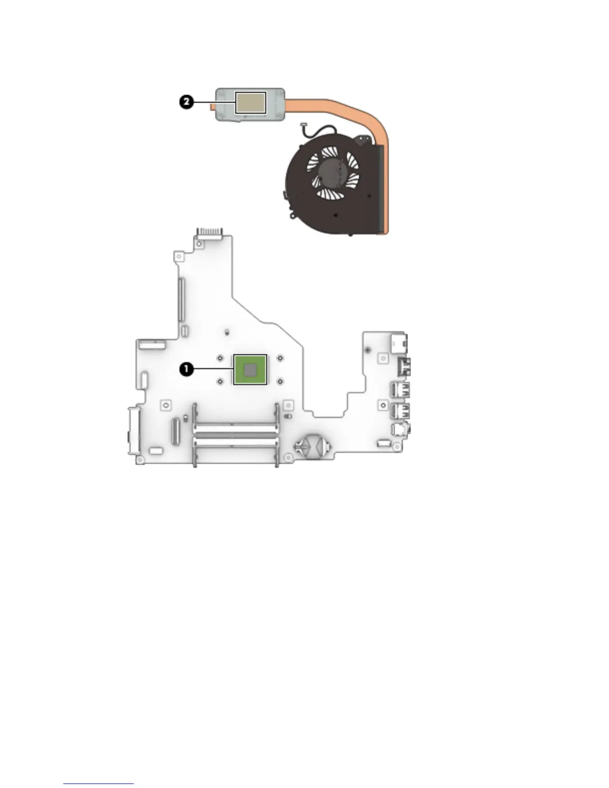 UMA graphics with fan: Thermal paste is used on the processor (1) and associated heat sink area (2).