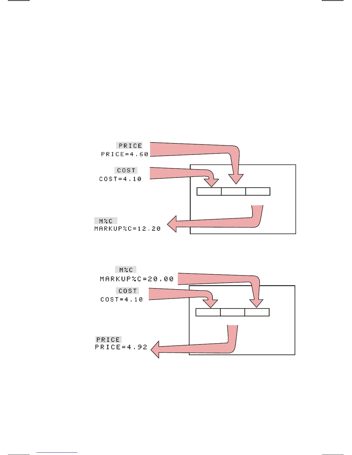 Then the same menu can calculate PRICE given COST and M%C.