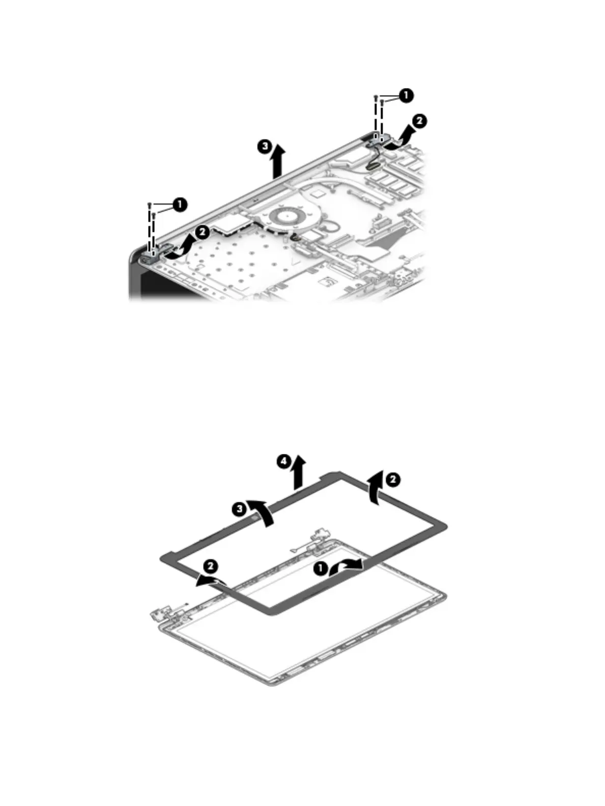 a. If you need to remove the display bezel, ex the top (1) of the bezel, the inside edges of the left