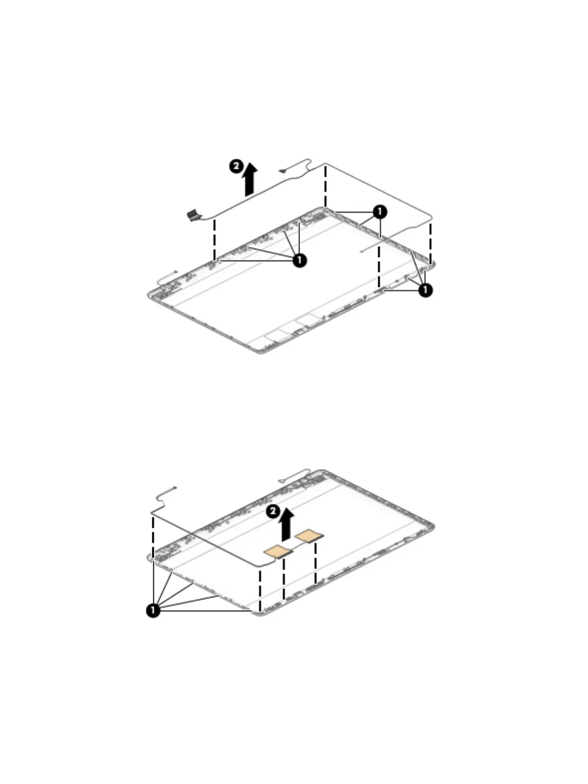 b. Release the antenna from the display enclosure (2).