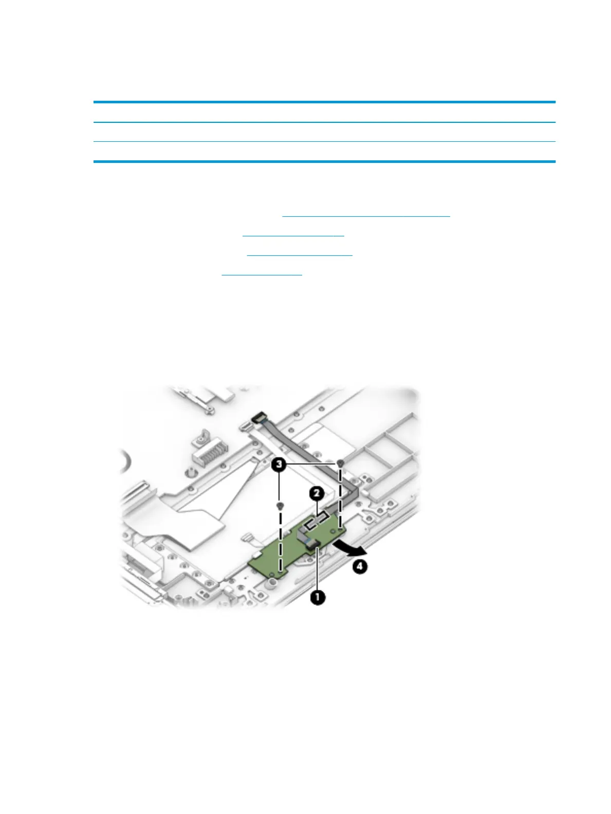 Table 6-11 TouchPad button board and cable descriptions and part numbers