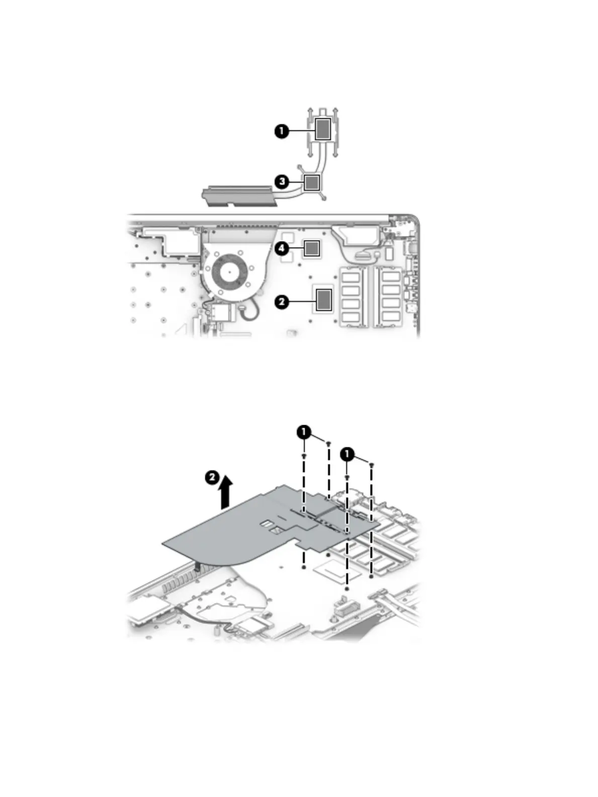 board components (2) (4) each time the heat sink is removed. Replacement thermal material is included