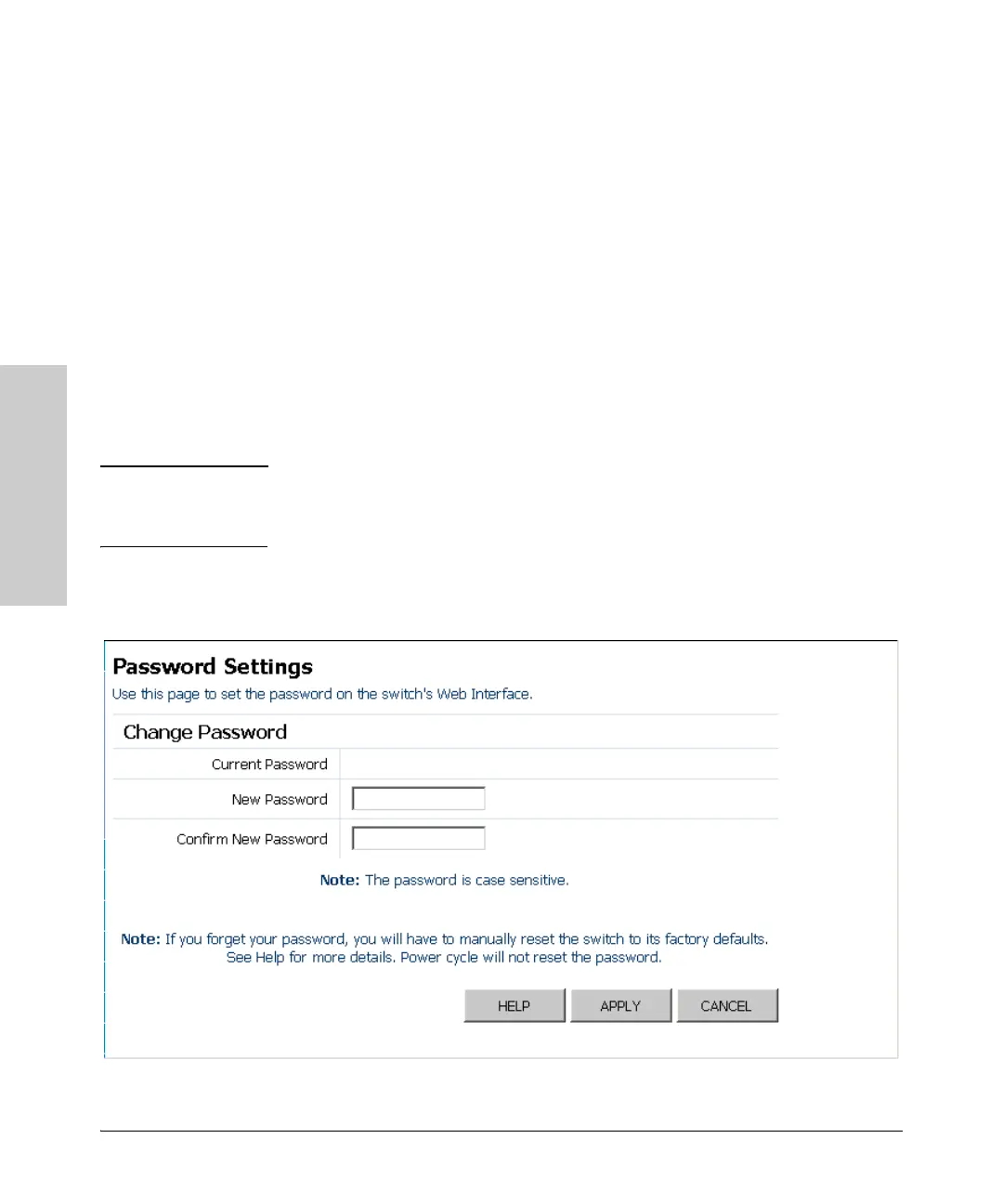 Note Be sure to keep a record of the switch’s password. If you cannot remember