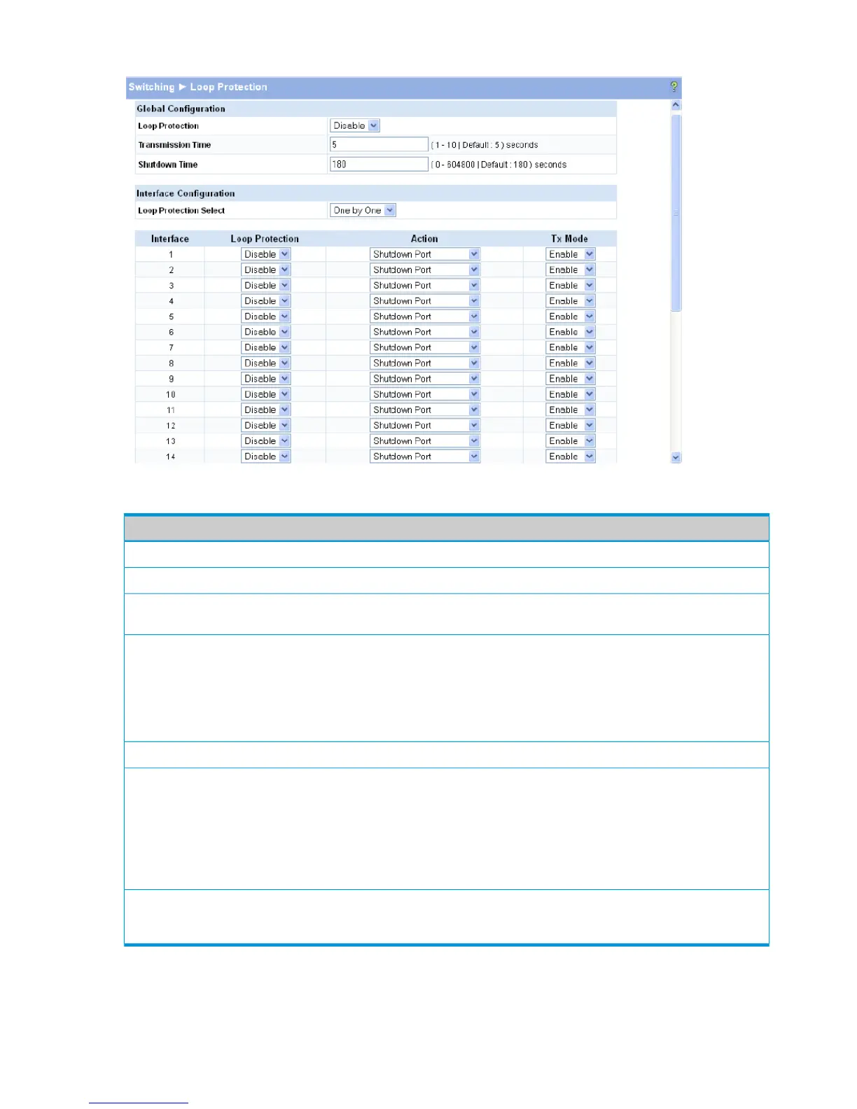 Select Enable for each port on which you want to use this feature.Interface / Loop Protection