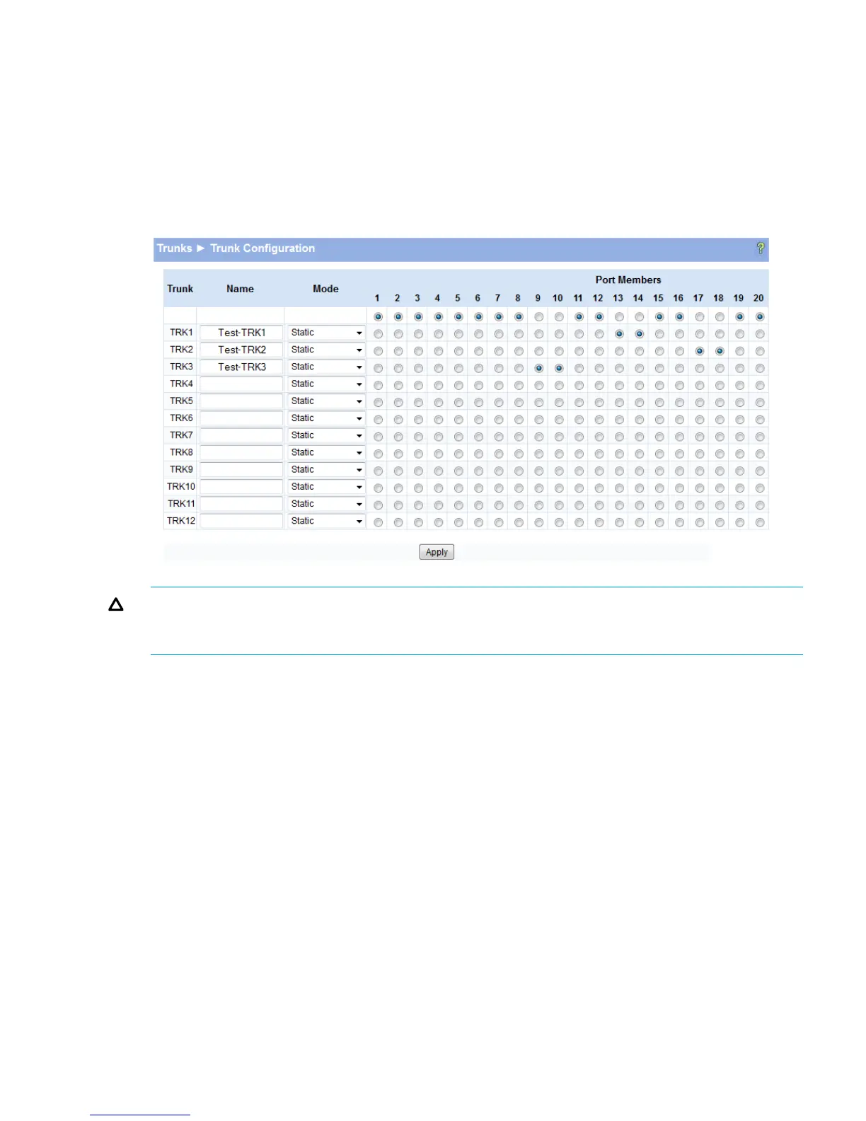 In Figure 31, all trunk modes are configured in Static mode.