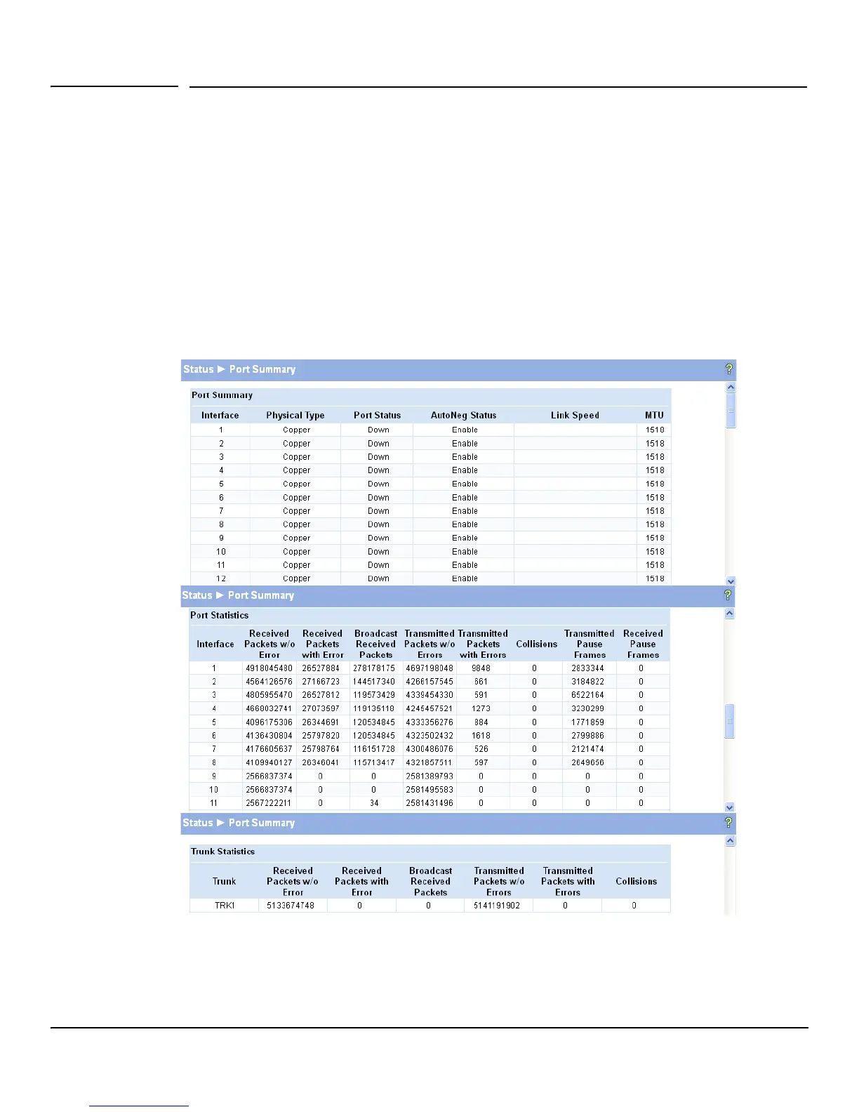 To display the Port Summary page, click Status > Port Summary in the navigation pane.